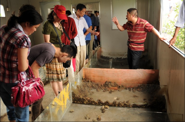消費者在楊鳴澤的蟾衣采制基地觀看蟾蜍蛻衣 -